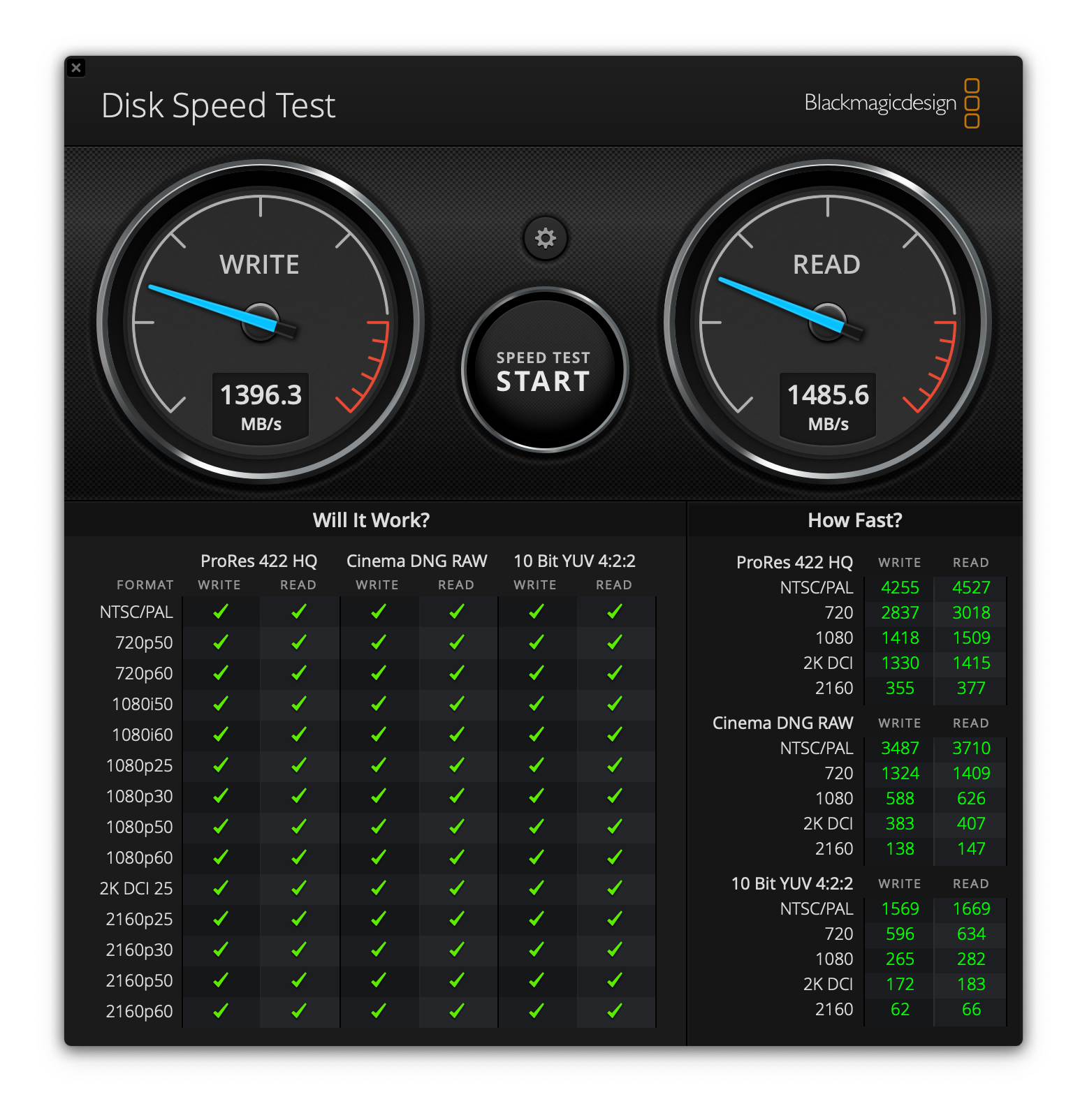Blackmagic Disk Speed test gives me aroung 1000MB/s write & 1300MB/s read, so looking for improvements in this if possible. (mostly if i could somehow get H.265 encoded files to actually play smoothly)