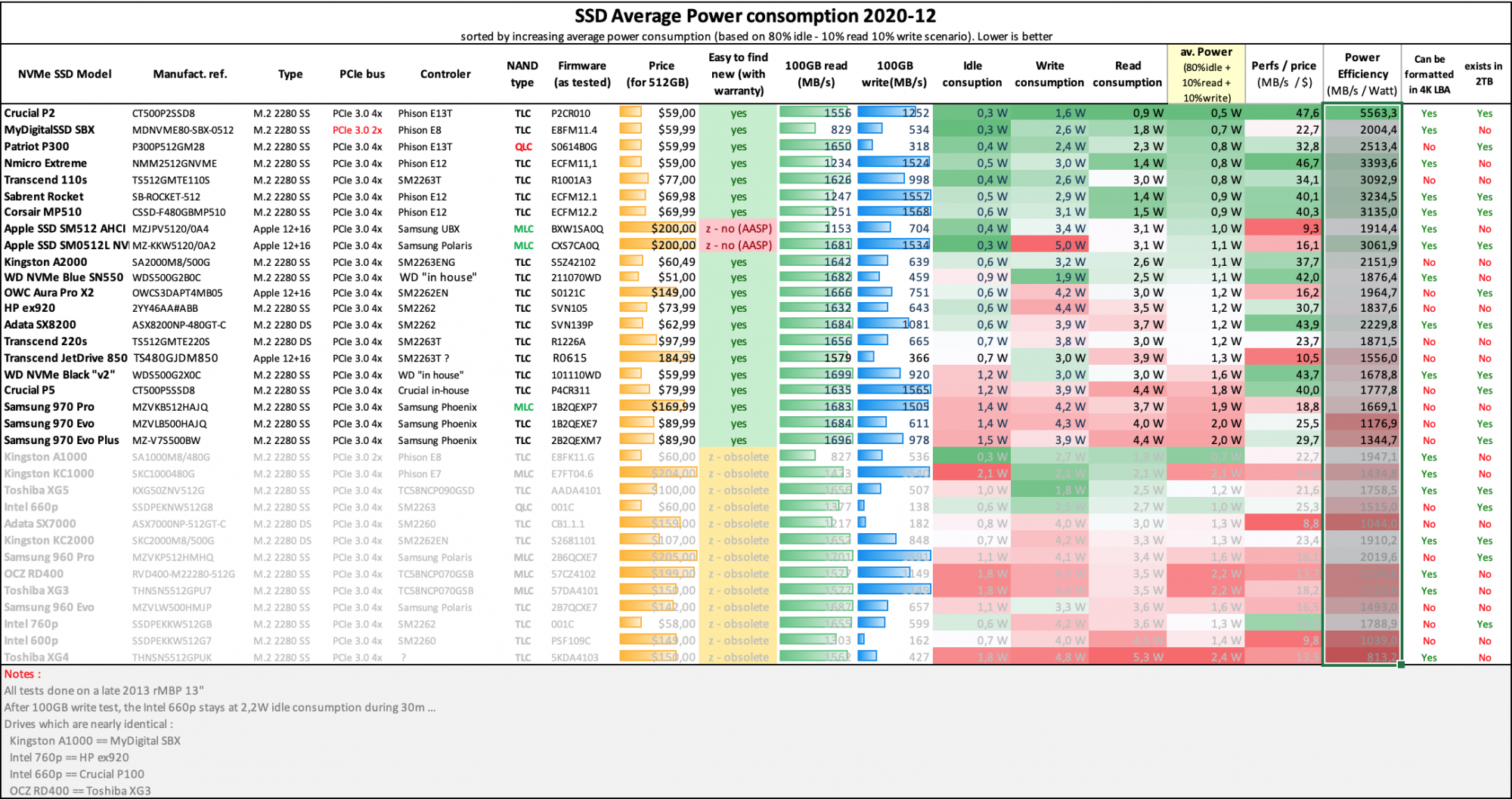 @gilles_polysoft's charts the Intel 660p offers both poor write performance (the worst of all SSDs on that list) and poor power consumption as well.