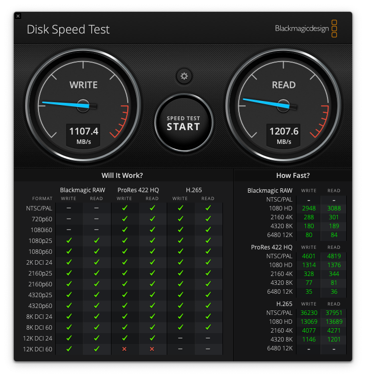 SSD speeds in BlackMagic benchmark screenshot: