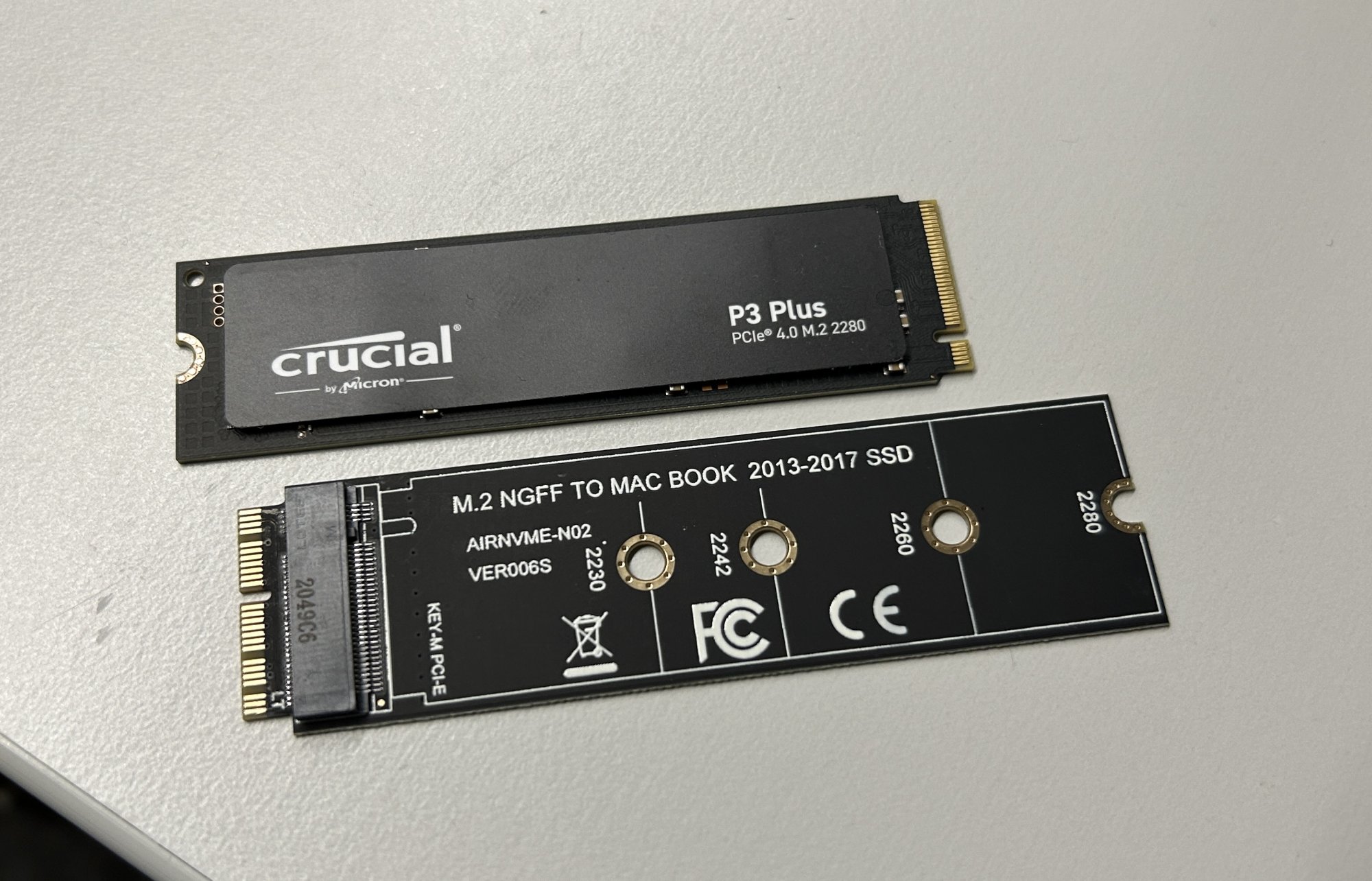 SSD: Apple SSUBX (off eBay with heatsink from Mac Pro 2013 - filed down edges to fit with thermal pads)