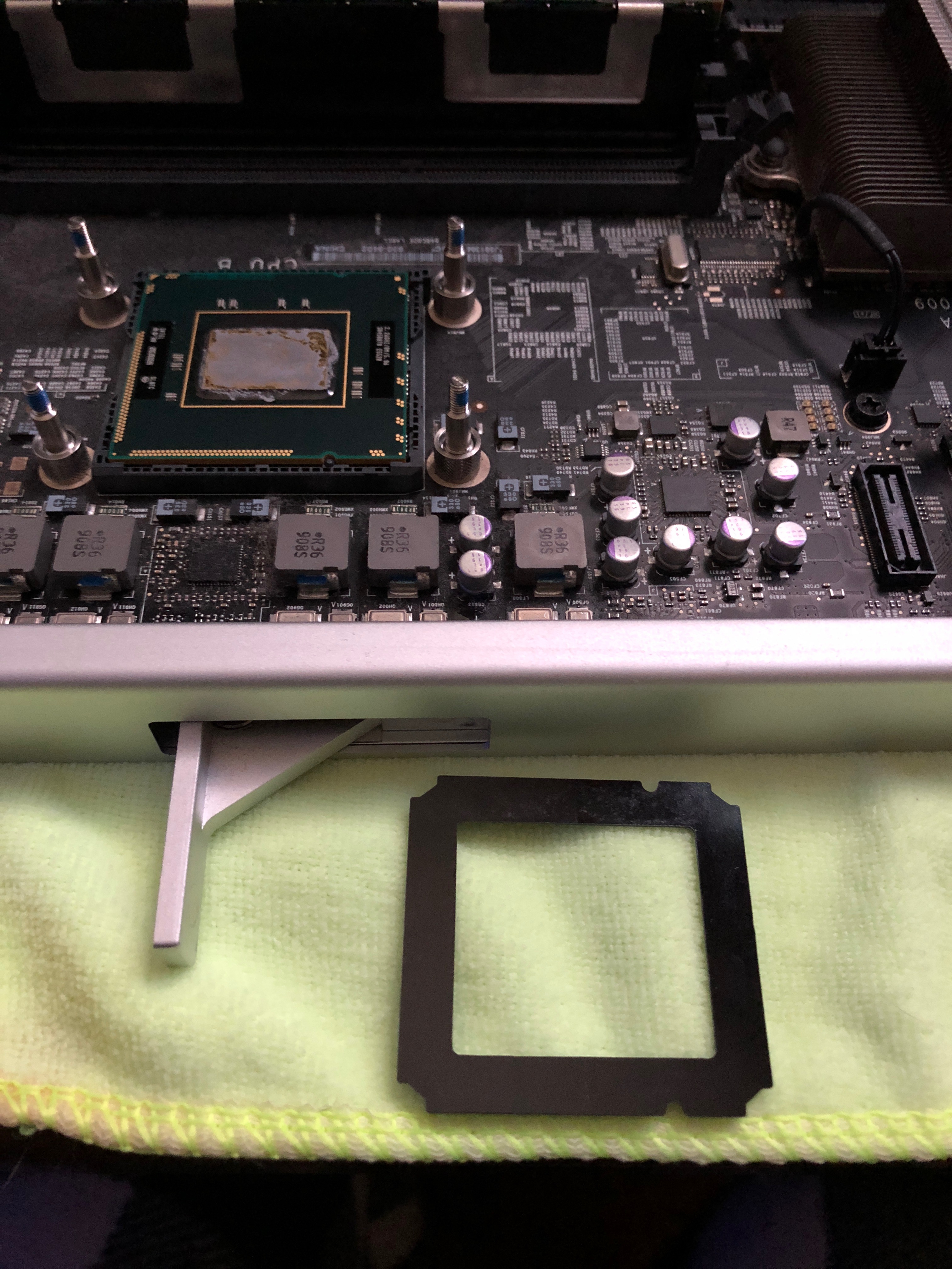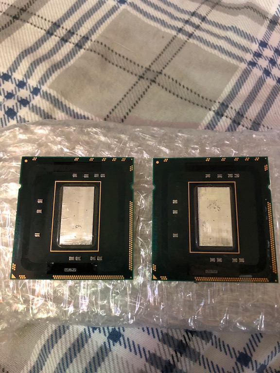 Using a razor blade, I carefully removed the gasket and thermal material from the processors. Then, cleaned them up with isopropyl alcohol, and gave them a quick blast with compressed air.