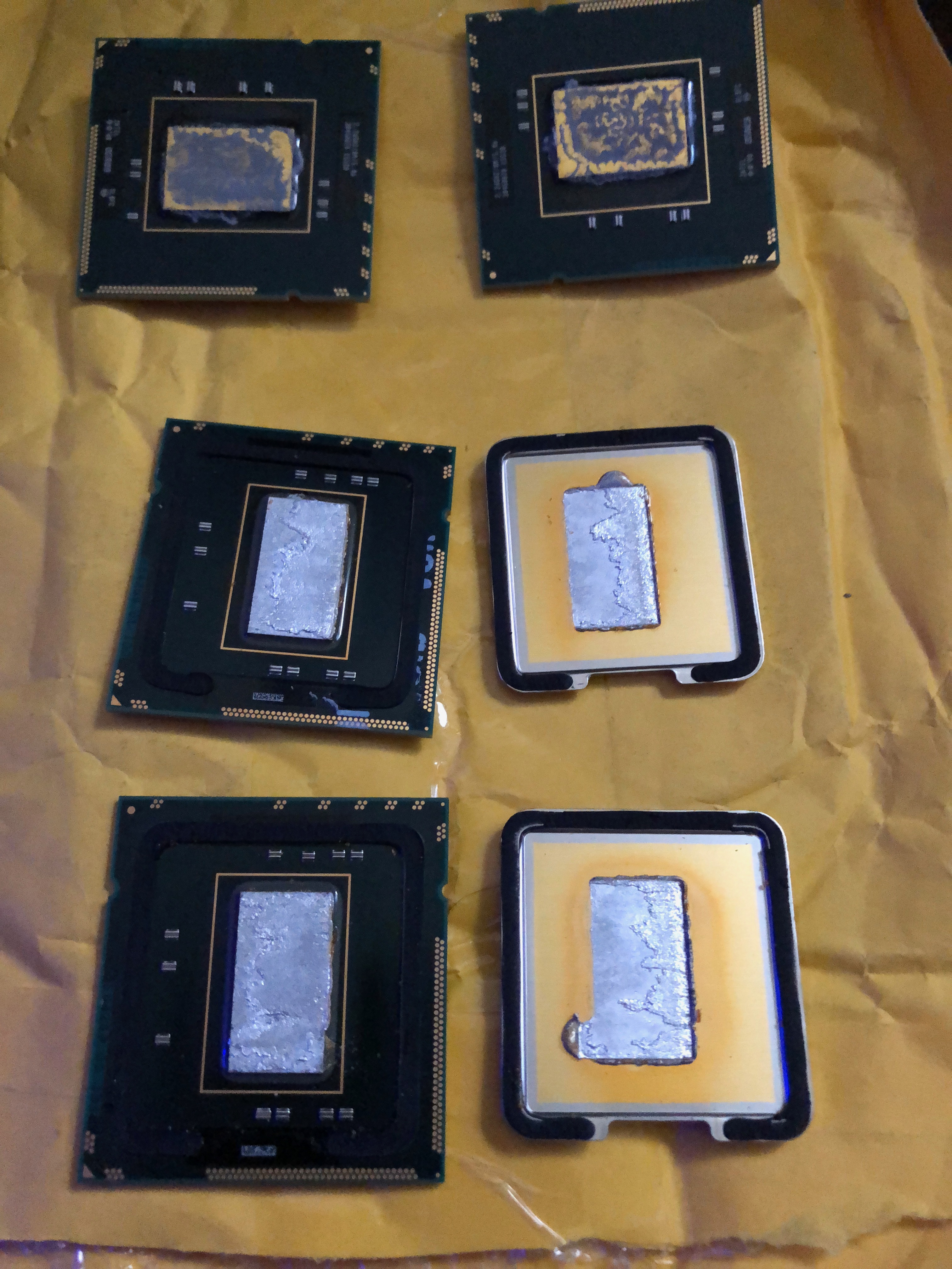 De-lidded the pair of X5690s using the vice only technique. This process took less than 5 minutes, and was super easy. I had 100% success with this procedure, and it was my first time doing it. Highly recommended to anyone on the fence about de-lidding their own CPUs... DO NOT pay someone $70+ to do this for you!