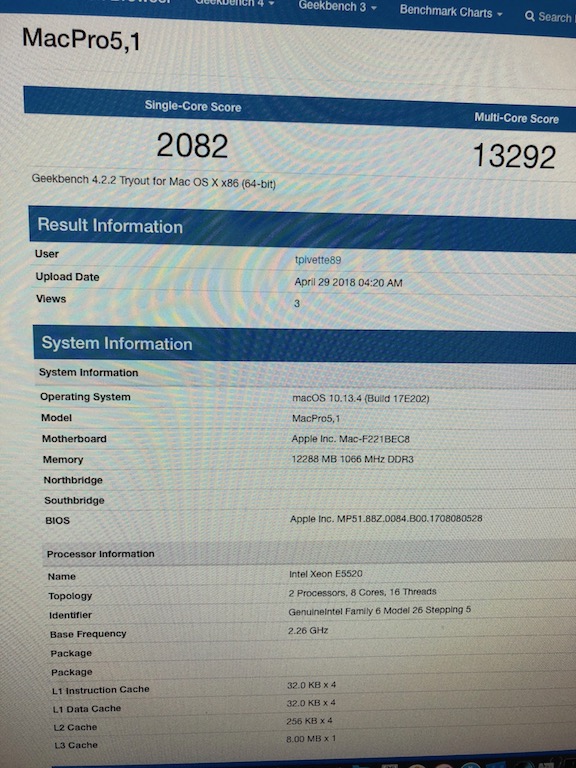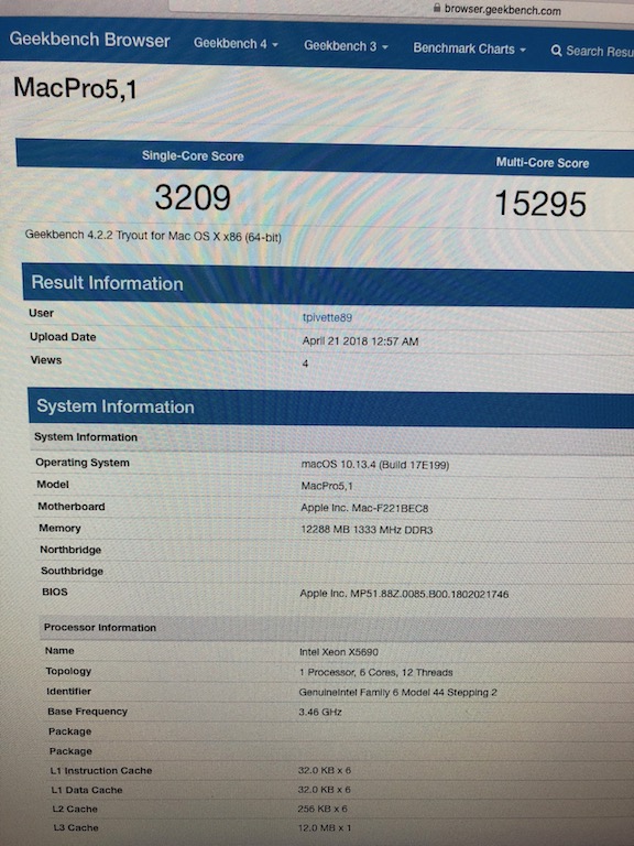 So, my single-core score increased about 900 points, while the multi-core score leaped ahead by almost 12000 points. Unfortunately, the single-core scores were lower than the single X5690, but I did increase the multi-core score over that setup as well. All in all, it was a worthy upgrade that I wouldn't hesitate to recommend to anyone with a 4,1 or 5,1 machine. This will undoubtably increase the lifespan of this computer.