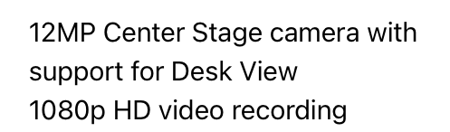 Keep in mind, although the new webcam is 12MP Apple still limits it to 1080p during video calls for bandwidth reasons: