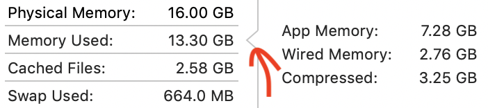 Edit: Also. Pay attention to the design - the graphic tells you how it makes up physical memory - the littel dent is to show you the thing on the left i.e. physical memory is made up of the stuff in the on the right (App + Wired + Compressed). Its Apple - you know they love such little design features: