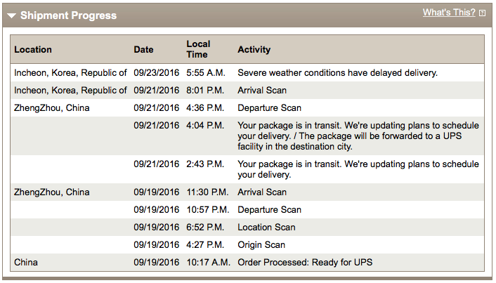 In some cases, shipments have moved between the U.S. and Asia in only a few hours, which is unrealistic even when accounting for time zone differences. UPS has allegedly told some customers the irregular movement is related to paperwork, but weather and mechanical issues could also be involved.