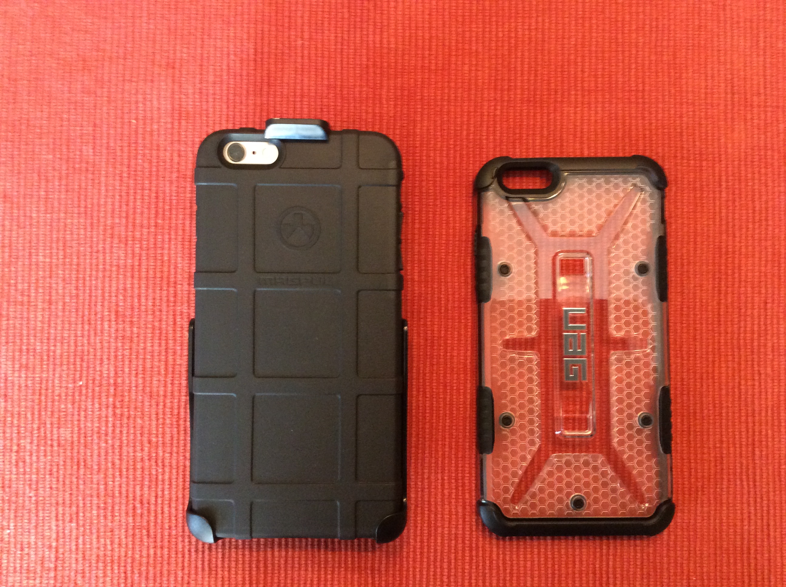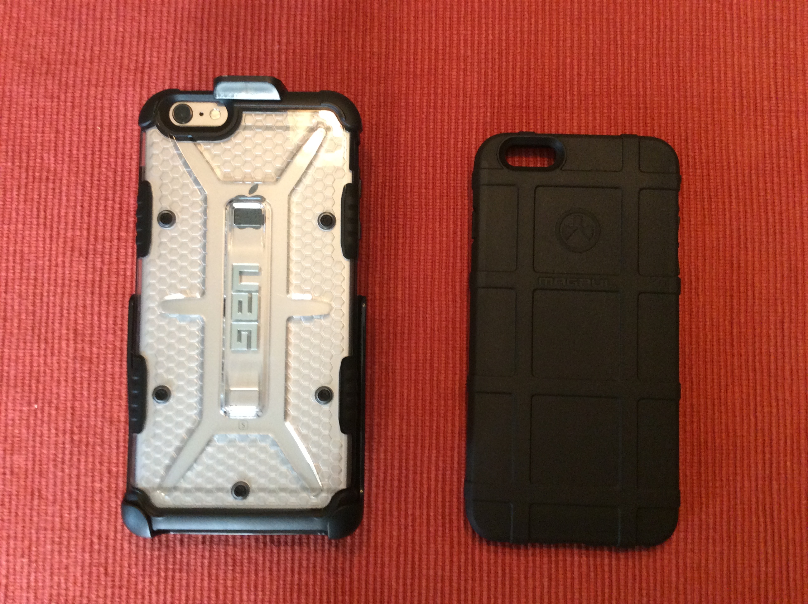 Thanks are the overall dimensions about the same on both if they both fit that holsterI agree with kgenova about the two cases, I have both. They are both great choices for a case. Both are grippy but in different ways. I believe both will provide good protection for most average needs. The buttons are very responsive with both. And like has been said, I also think the UAG is a little more stylish. You can pick up the Magpul for around $15 and the UAG for around $29 on sale through Amazon. As an added benefit, if you need or want a belt holster, the Seidio Dilex Pro holster works with both. Here's some pics for you.