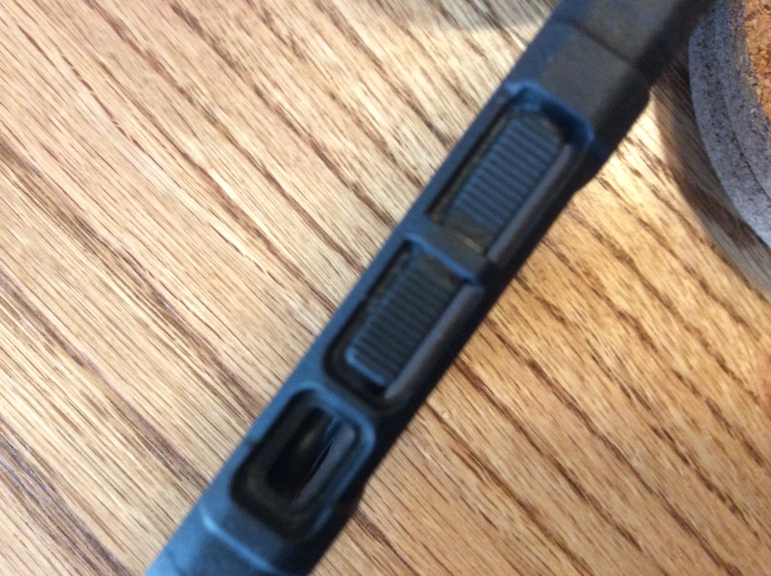 Any chance of posting a close up of the buttons on the Magpul?I never had one for the 5S, but on my 6+ the buttons work very easily. Very tactile response and can hear the button click as though they aren't even covered. The UAG case is ever so slightly stiffer but I just got it so that one may ease up with use, but they are still very responsive as well.