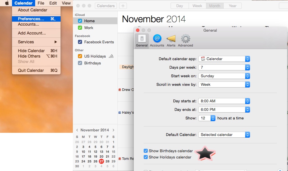 US Holidays is listed in Calendars under Other, it says Subscribed underneath it, and it is checked, but there are no holidays showing in the calendar.