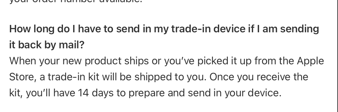 I was replying to another person who didn’t know that you couldn’t hand in the old phone when picking up the new one.I didn't have the option to bring my old phone to the store for a trade-in. I was only able to get a trade kit shipped to me.