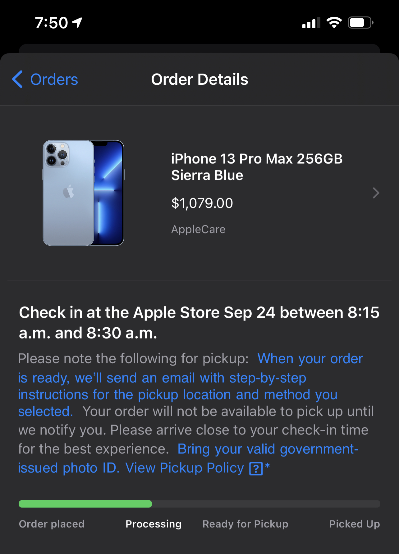 I related all of the failed attempts to use my Apple Card to no avail. Then after reading the best forum on everything...MacRumors...learned about others having trouble using their AC. I then switched to another card and the transaction went through in 10 seconds. I told him that I was extremely disappointed since I was pre-approved for the upgraded and had so much trouble. I expected to receive my new iPhone on 9/24, and by the time I used another card, delivery went to 10-6/10-11.