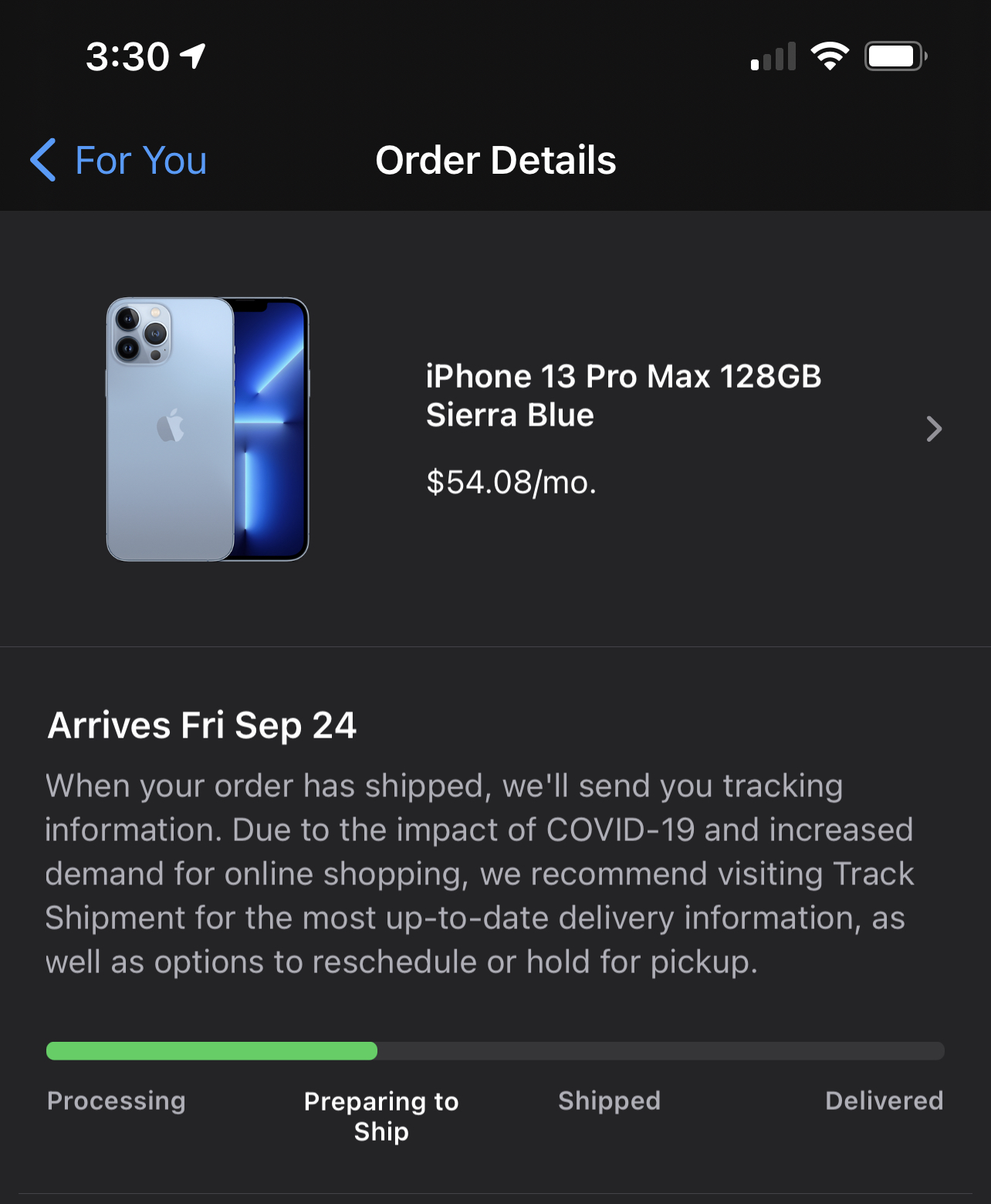 No I got mine unlocked from apple used my debit cardOut of curiosity, for those still processing (w/ 24th delivery) any of you using the Verizon payment program? I think we got our orders in slightly later than others as we couldn't pre-pre-order.