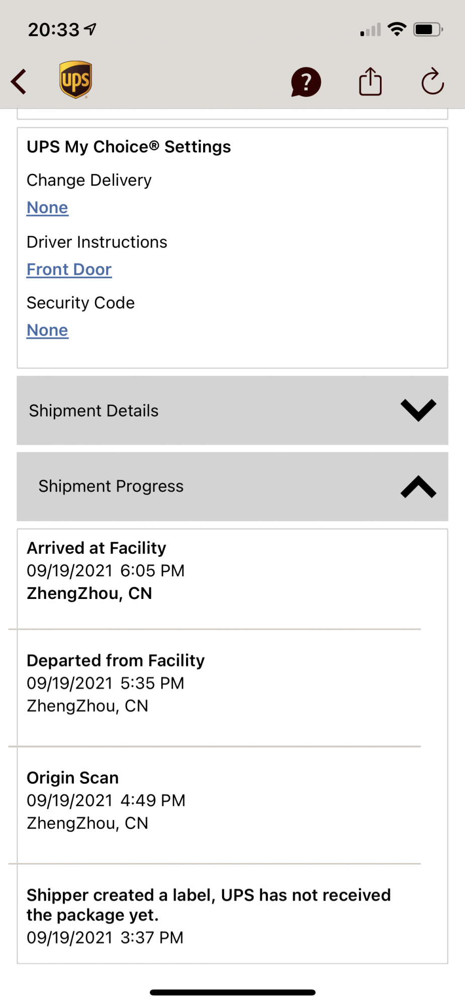 IDK why my choice is lagging so much. Since late last night I could see it part of the tracking info from track by reference and I wish UPS would enable a way to verify ourselves so we can see full tracking info. Miss the polls says when it would show everything. I tried contacting apple and UPS neither could get me the details.