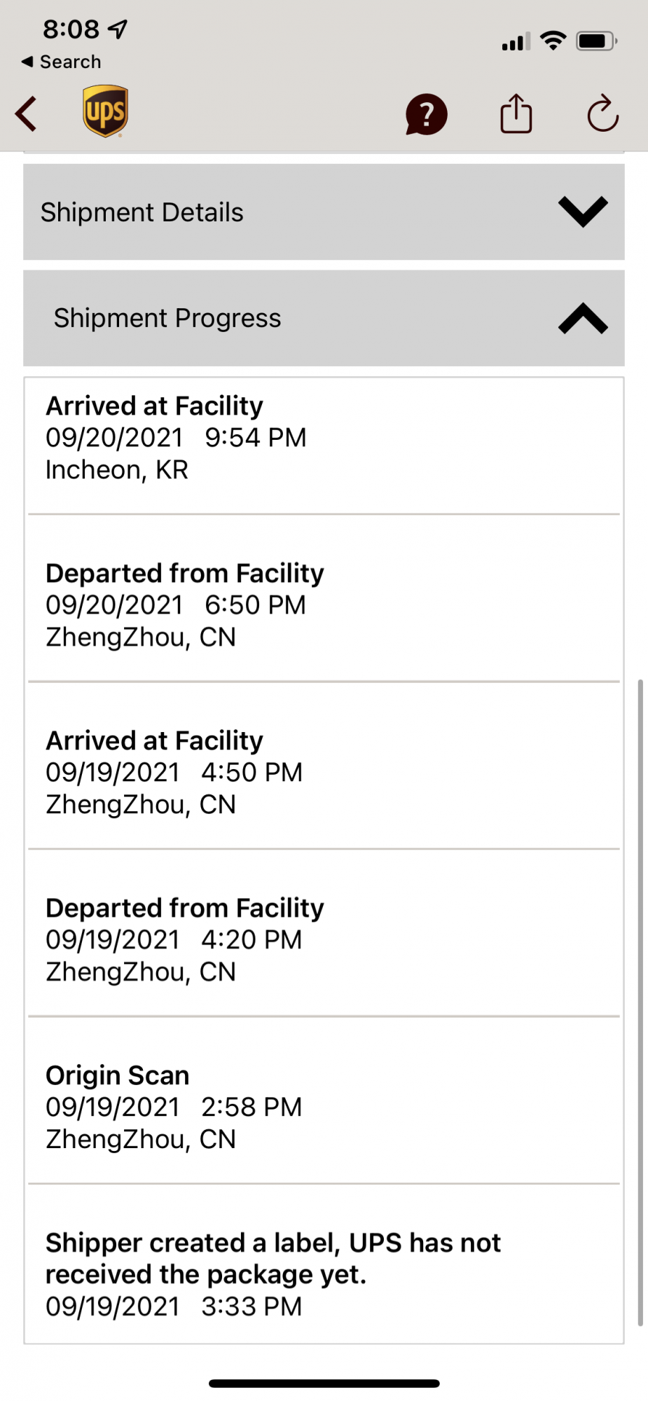 Do you see any movement with your iPhone?I got a response back from UPS e-mail that they will put in a request for a UPS CC pick up.