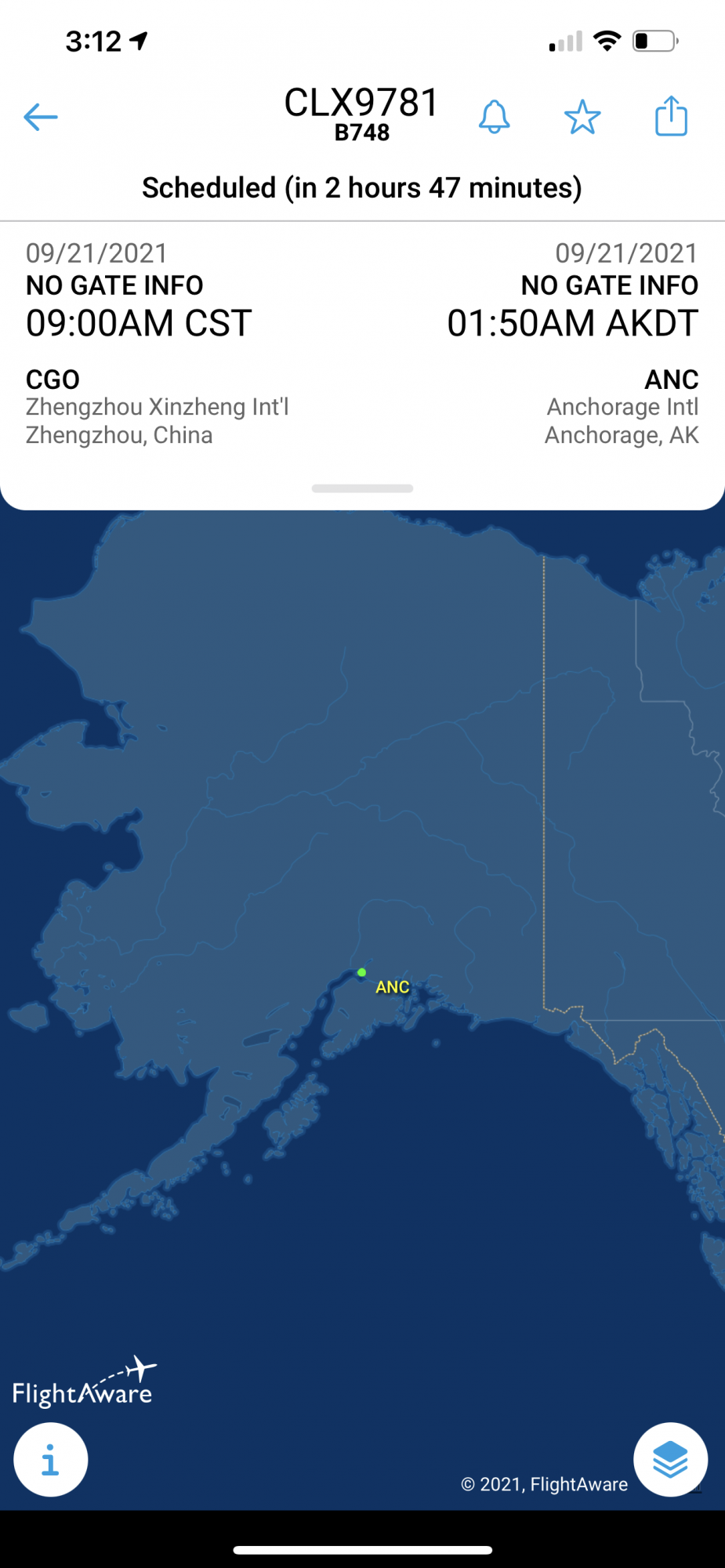 CV9781 (CLX9781) Cargolux Airlines International Flight Tracking and History 21-Sep-2021 (CGO / ZHCC-PANC) - FlightAware