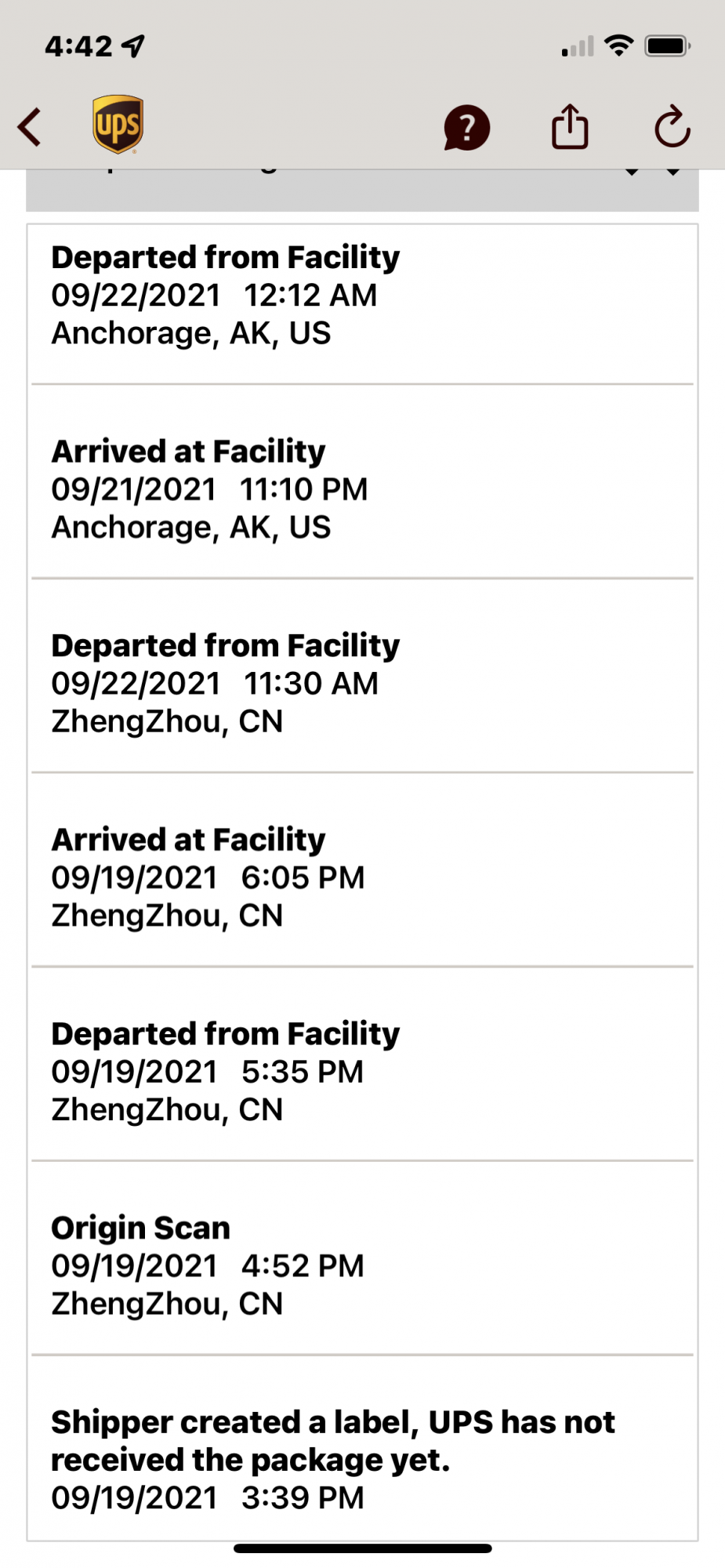 My 9/19 6:05 China left yesterday and has since departed Anchorage at 12:12 AM today. My 9/20 4:00 China phone has had no movement