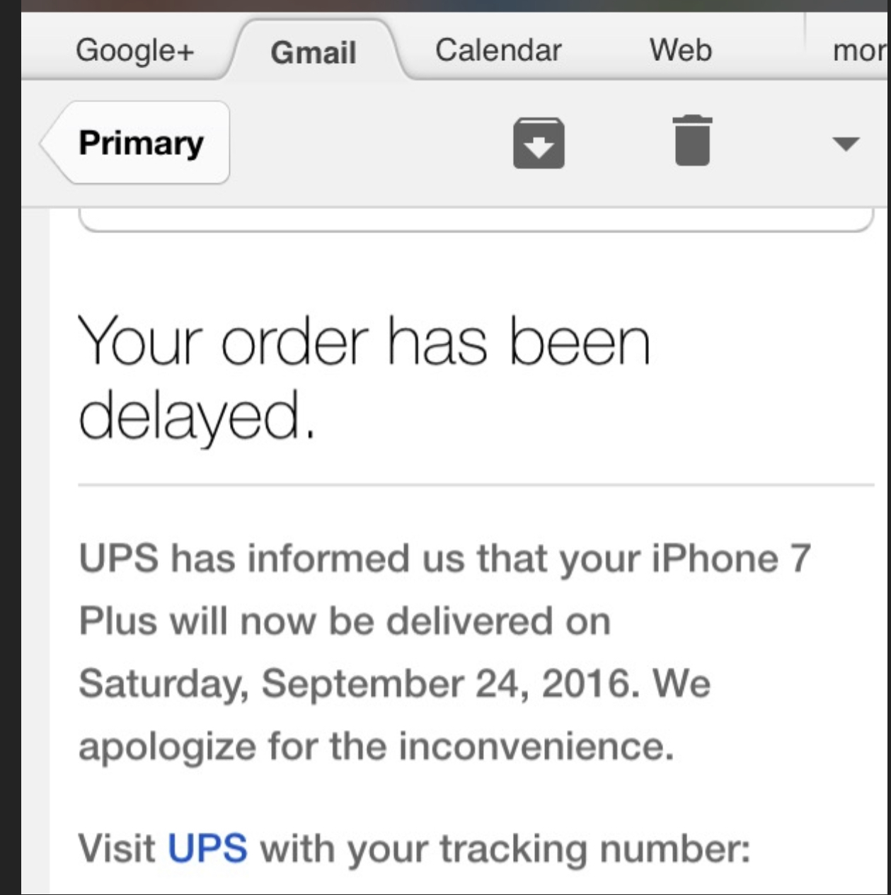 One year, the 7+ was delayed thanks to Mother Nature and “mechanical “ issues.Apple wouldn’t tell this many people they were getting it on 9/24 and then not be able to live up to that promise.