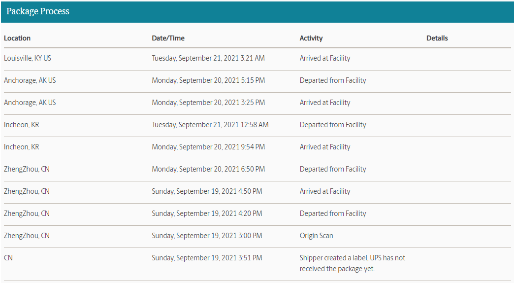 Apparently it processed through ZhengZhou, Incheon, and Anchorage all on Monday!!!!