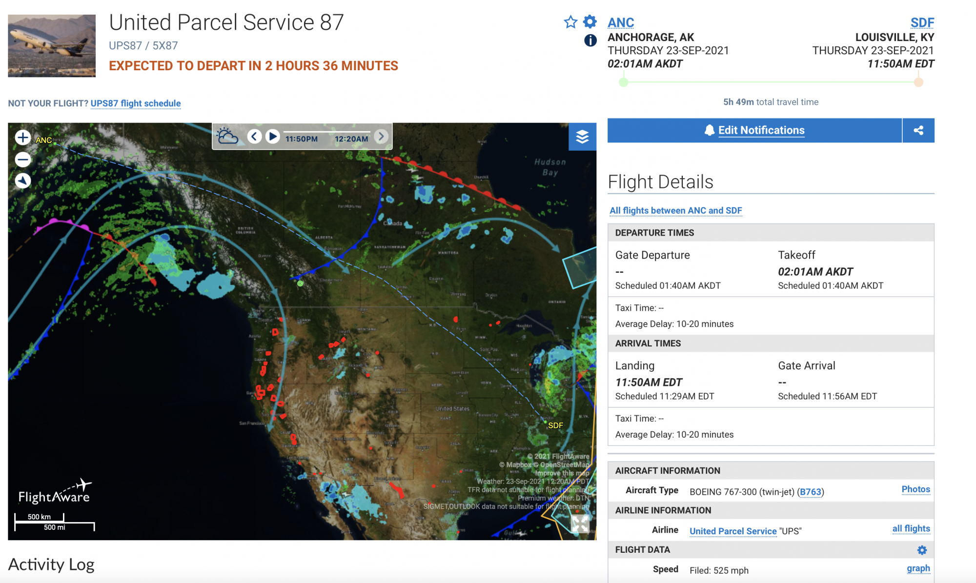 It is finally Thursday, 09/23/2021 at 12:37 AM PST. Today is going to be our last day until we all take off to the assigned destination, where we are all destined to go. Our sweet home. I’m expecting to arrive in KY this morning. I hope I get to see all of you in Louisville, Kentucky before you take your departing flights to your house. As promised, no one was left behind in China. We should either be in Louisville, Kentucky, or on our way to get to KY now. Everyone should be expecting to get an Import Scan today. Once you get an import scan, we will all be sorted away to different UPS planes. I will be rooting and cheering for all of you. I hope everyone has a very productive day as we will all be very busy tracking our own plane. Running around the airport and waiting desperately for an import scan.