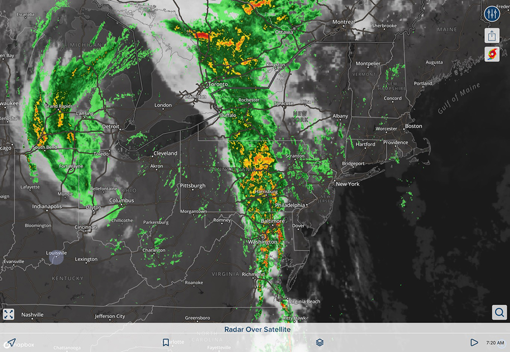 This SHOULD be off the coast by 12-1am tonight. Hopefully very little ponding, minor flooding if any. And hopefully not affecting deliveries tomorrow.