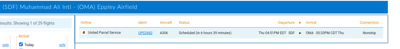 Yep, that should be the one. Can't wait! Hopefully it gets delivered early, my flight out to Minneapolis leaves at 8. Want to play a bit before I leave.For anyone in the Western Iowa/Nebraska area, this is the only flight that I'm seeing today for UPS to arrive in Omaha: