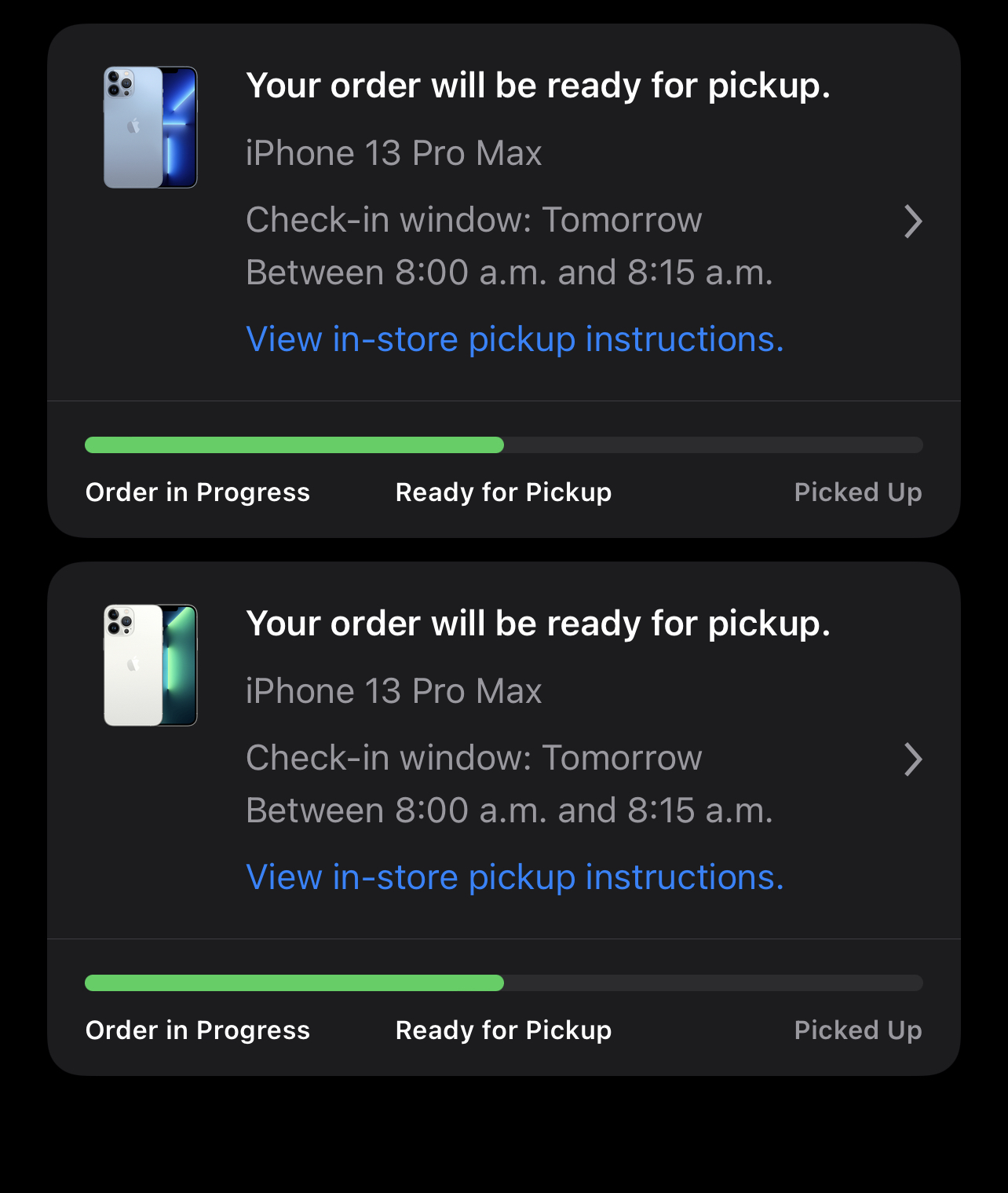 Kinda nervous cuz the card issue with the Apple Card. Still not pickup ready email either.