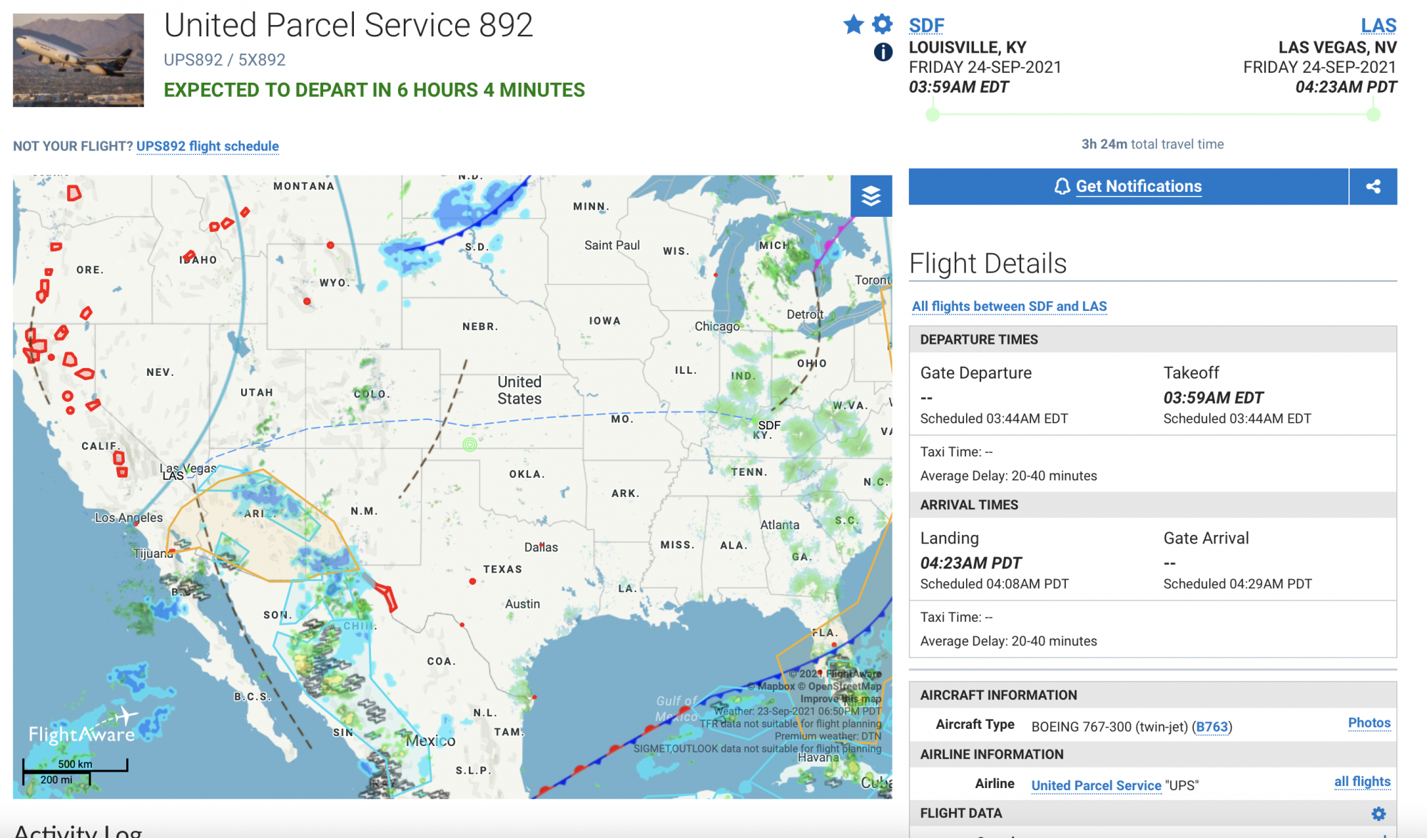 5X892 (UPS892) United Parcel Service Flight Tracking and History 24-Sep-2021 (KSDF-KLAS) - FlightAware