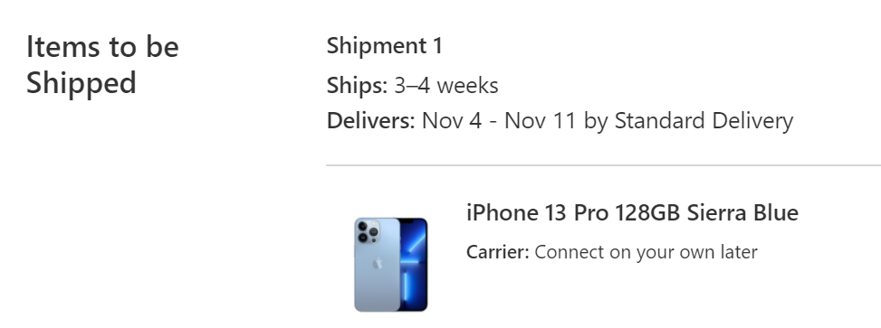 My iPhone 13 Pro has finally shipped. Expected delivery October 7.