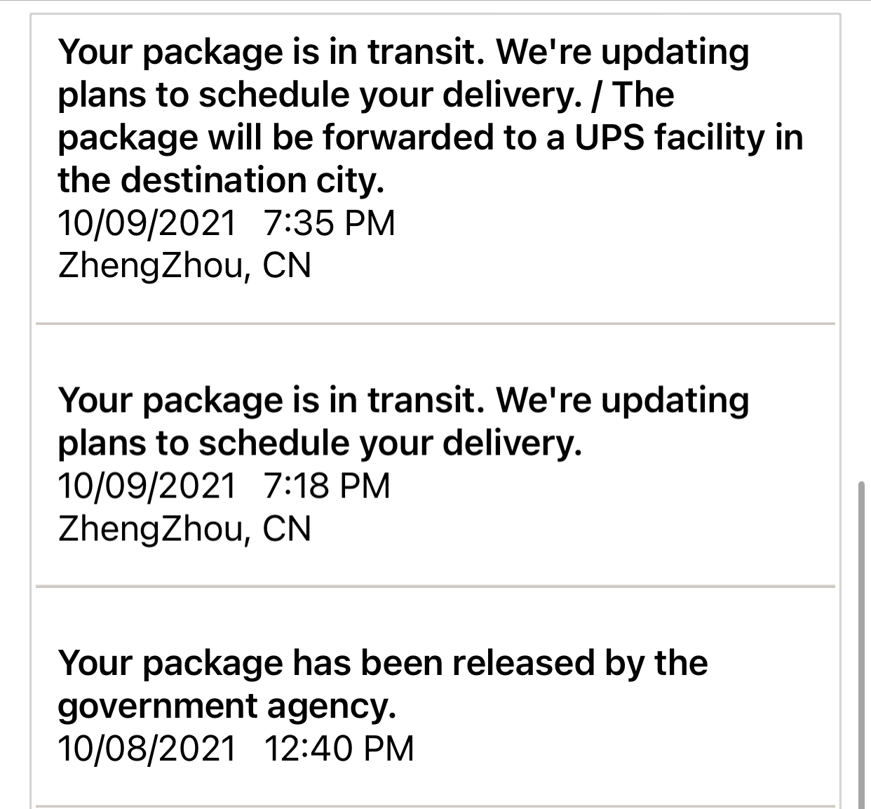 UPS just change my estimated delivery to oct 19 and still in chinaSame. 🙋🏻♂️ Hoping that it starts moving today and we get it on time or by Friday. From the stories I have read of people that went through the same, there seems to be an average 4-5 days to get past status.