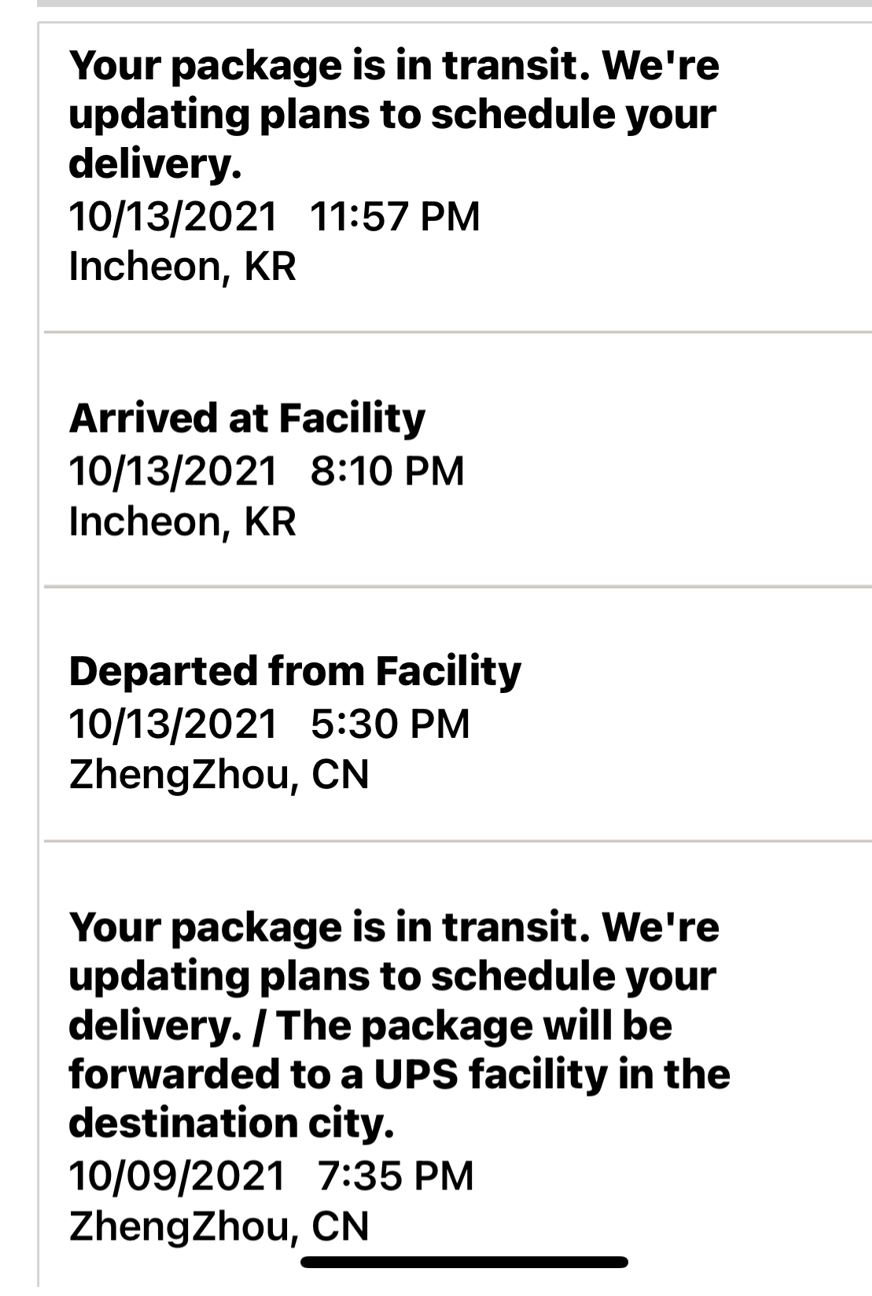 I'm so jealous! I ordered my 13 Pro 256 Sierra Blue from Apple on 9-18. My original UPS delivery estimate was 10-14. Today it slipped to 10-16, then 10-18, and later 10-20. Now it says to check back tomorrow for a better estimated delivery date. It spent 4 days in ZZ. I thought when it got to Korea, it would be a quick trip to the US. Guess I was wrong. 😥😥I placed my order Thursday 10/7 and had had a ship date of 10/15-10/22, but woke up today to a FedEx tracking number. It’s coming from Indiana it seems.
