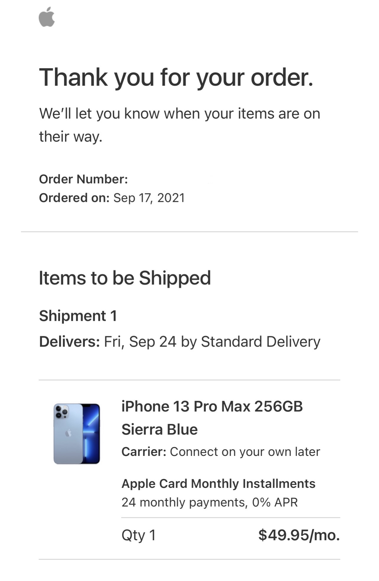 WOW! After the craziness last year that was by far the most smooth and easy order. Ordered right through ATT and got a 256 iPhone 13 Pro 256 Sierra Blue. I was truly shocked how fast and great that went!