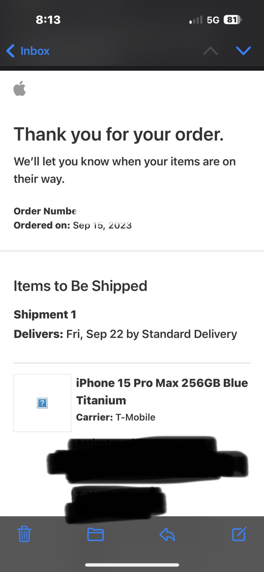 My email says 5:20. I could not get through. Stressful, but 9/22 delivery! Apple Card not charged yet.No way!!! you have the 8:01 stamp? That's wild. Apple App store was down for me at that time. I think you might be the first one reporting that. Congratulations! Which iPhone did you order?