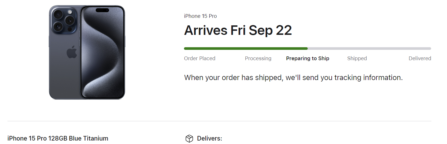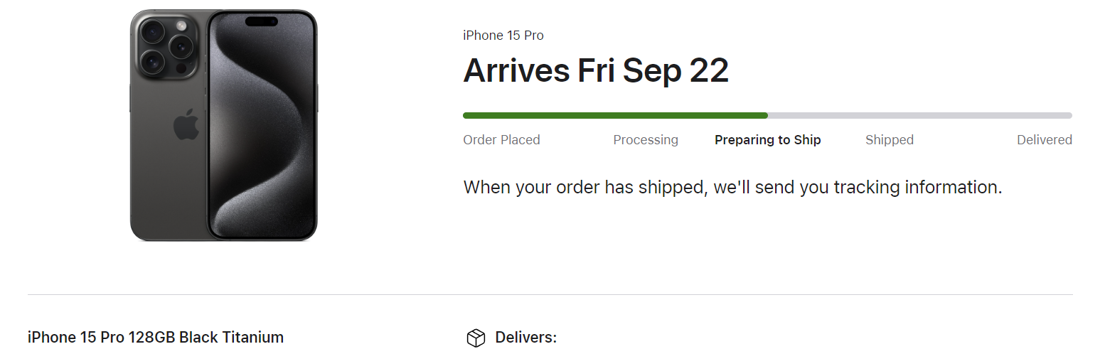 Are you having it delivered?Still waiting for my 15P Natural 128 to move to PTS. This has been my least productive day at work for a while, I've just been sitting on this forum and refreshing my order screen to see what happens