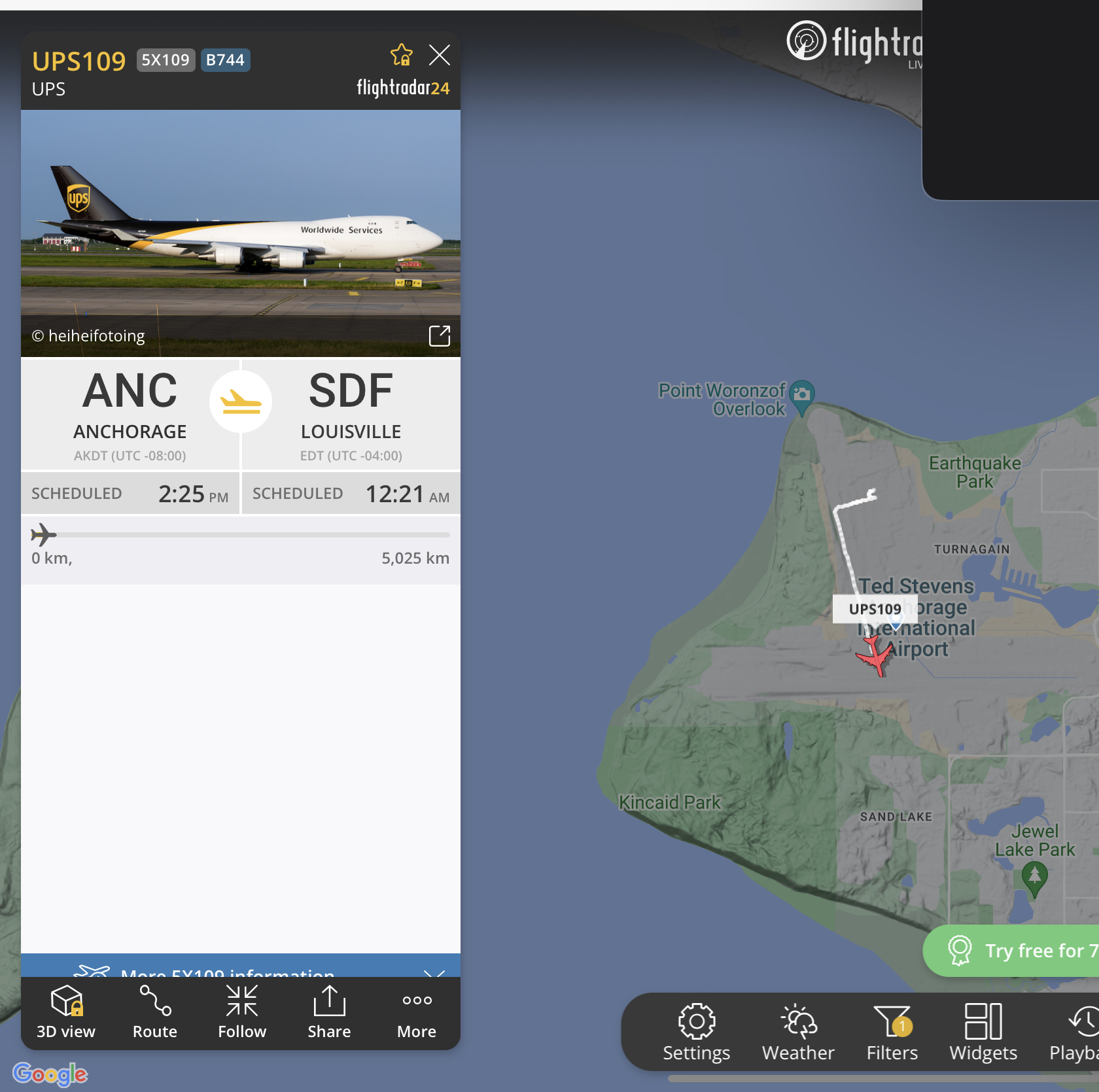 UPS175 is our first hope. Everything else is previously scheduled.Is there a lead flight? I see another out of ANC..