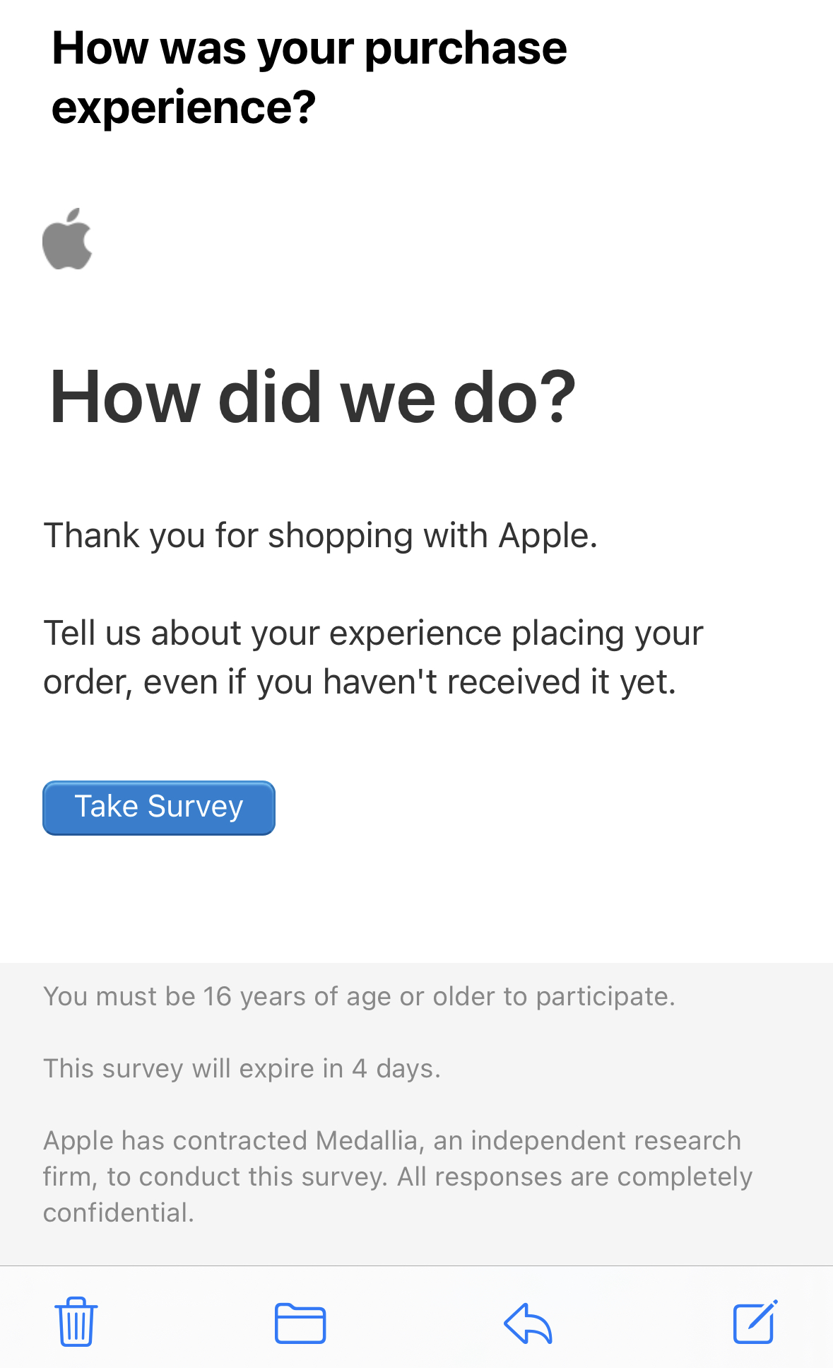 I got this as well. Demand is always high for a flagship iPhone launch but this wasn’t even a super cycle upgrade like the X.I just got this survey regarding the preorder process. Those of us who experienced technical issues during checkout should definitely participate.