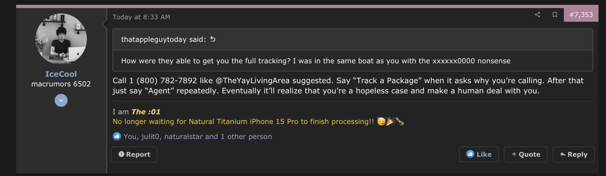 Don't let them give you a runaround. See @IceCool post below. It works. Alot of people had success with it. It took him 2-3 tries and it worked out for him. He posted back here with his tracking information.I attempted this and They told me to contact Apple