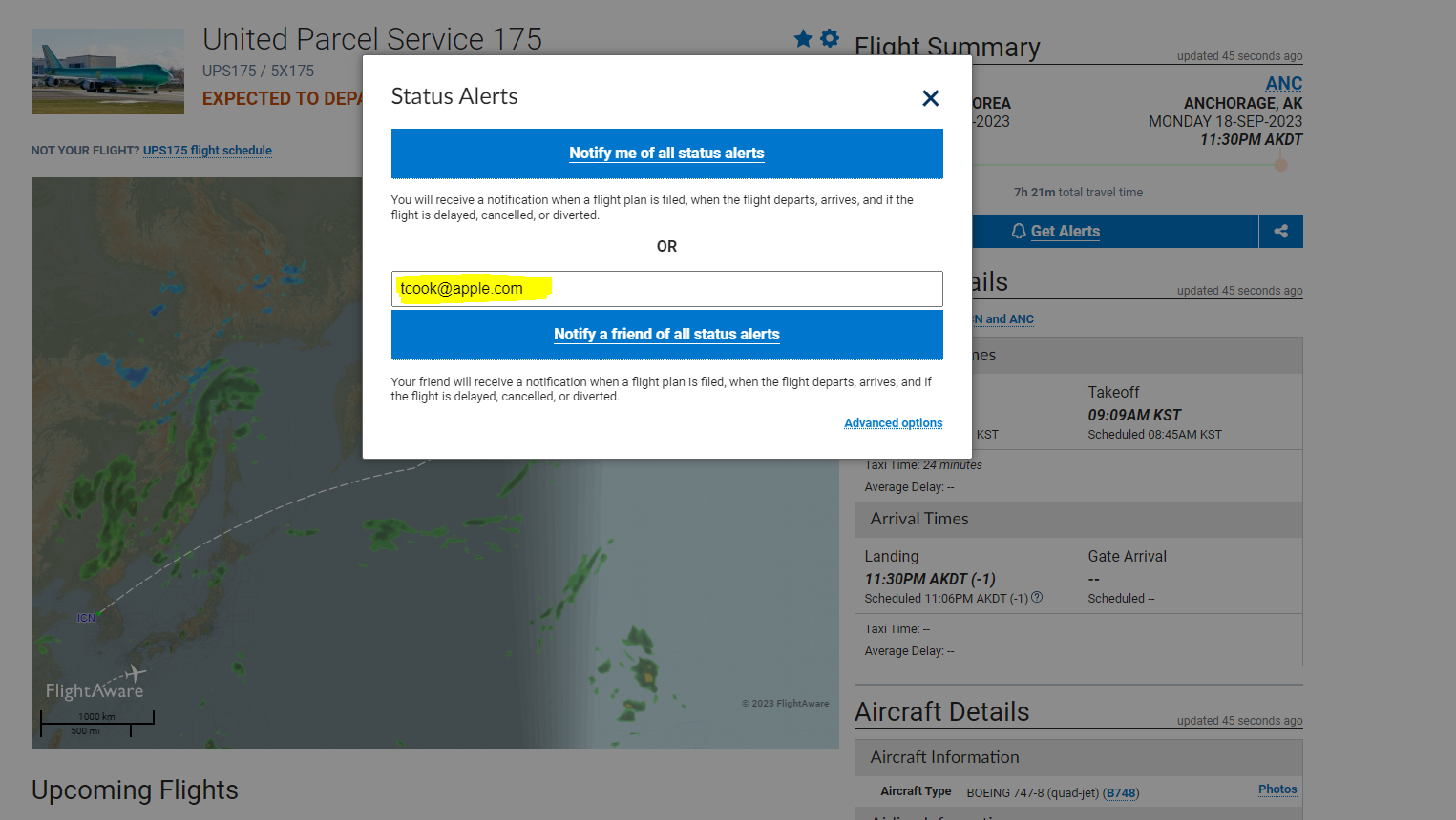 Should we also notify tcook@apple.com. Maybe he will be interested in tracking our plane with us? Supply Chain Guru