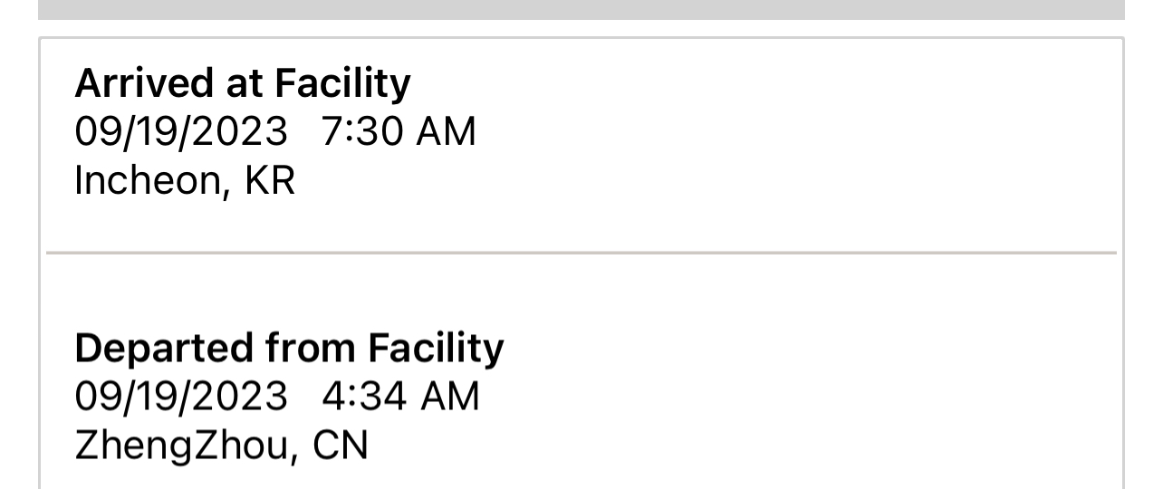 Curious, why does it show a Clearance in Progress scan for Louisville yesterday 6:53 PM when it hadn't even gotten to Incheon yet?