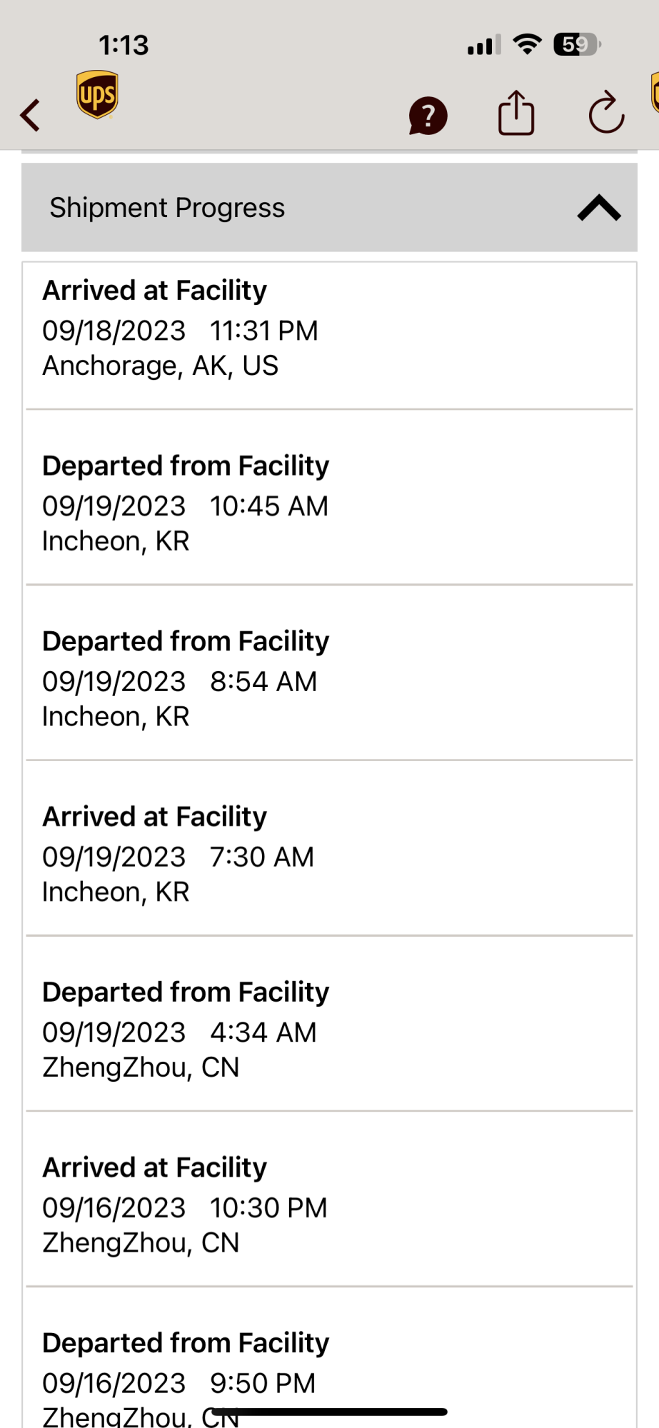 It is still on ZhengZhou, China the KY is just a Customs Update to expect Customs later. Expect your iPhone to start moving today 9/19 tonight in China to ICN and onward just as a Flight plan posts... It may be back to UPS 176 but stay tuned.I can’t explain this. As of this morning, UPS shows it still in China, AfterShip shows it in KY