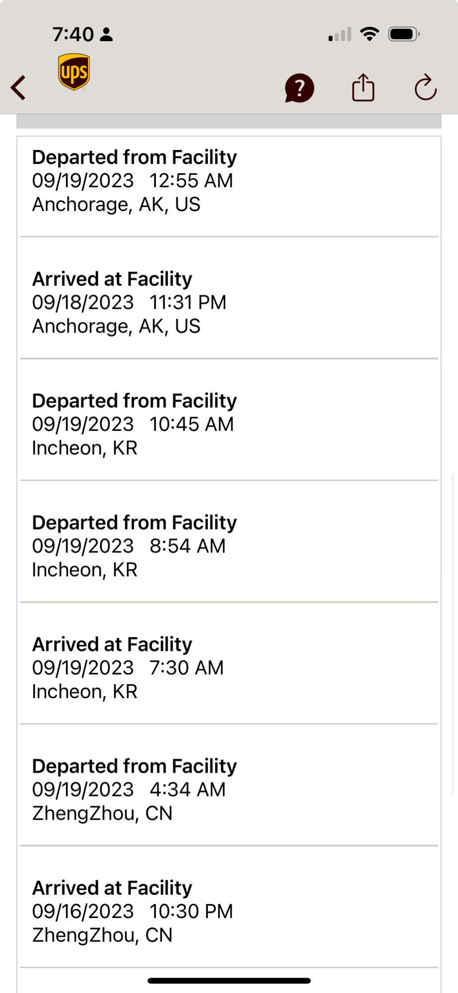 Just jumping on here super quick before work to post that I have the arrival post in Anchorage at 11:31 PM and Departure post at 12:55 AM.