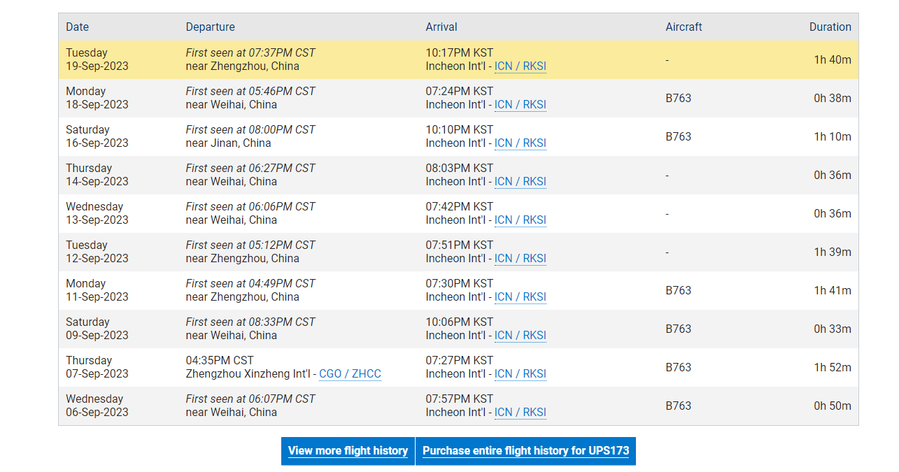 It looks like a group made it out of Zhengzhou to ICN on UPS 173 but no further updates in the last 1 Hr 54 Min.Finally caught back up. Had 30 pages to go through. So @TheYayAreaLiving 🎗️, it is my understanding that some are left in China?