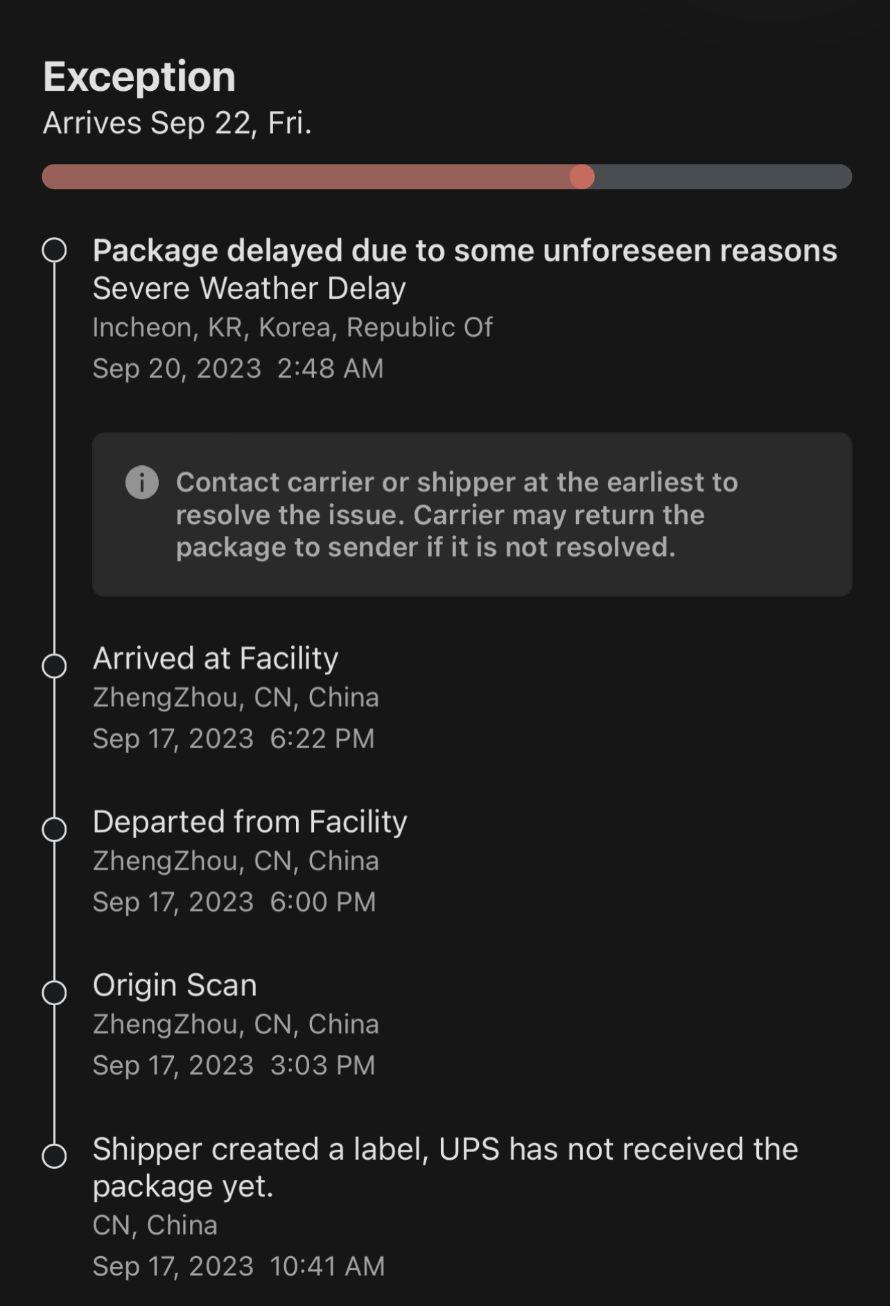 Looping the community in as I know many folxs pick-up at UPS hubs. Let's hope this is the case. I'll keep everyone updated.