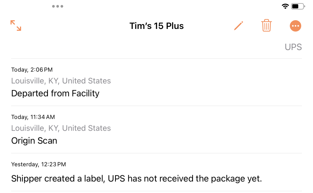 Interesting... I have no action on my Austin-bound phone. I would expect that since my work office is super close to one of their main sort facilities here, it is going to get on the 4AM flight tomorrow morning and get on our normal truck from that center.Got departure scans on both my north of Austin phones at 2:53PM. My bet is that our phones will be on the DFW flight UPS2798. It's not all that far down I35 from DFW to AUS.