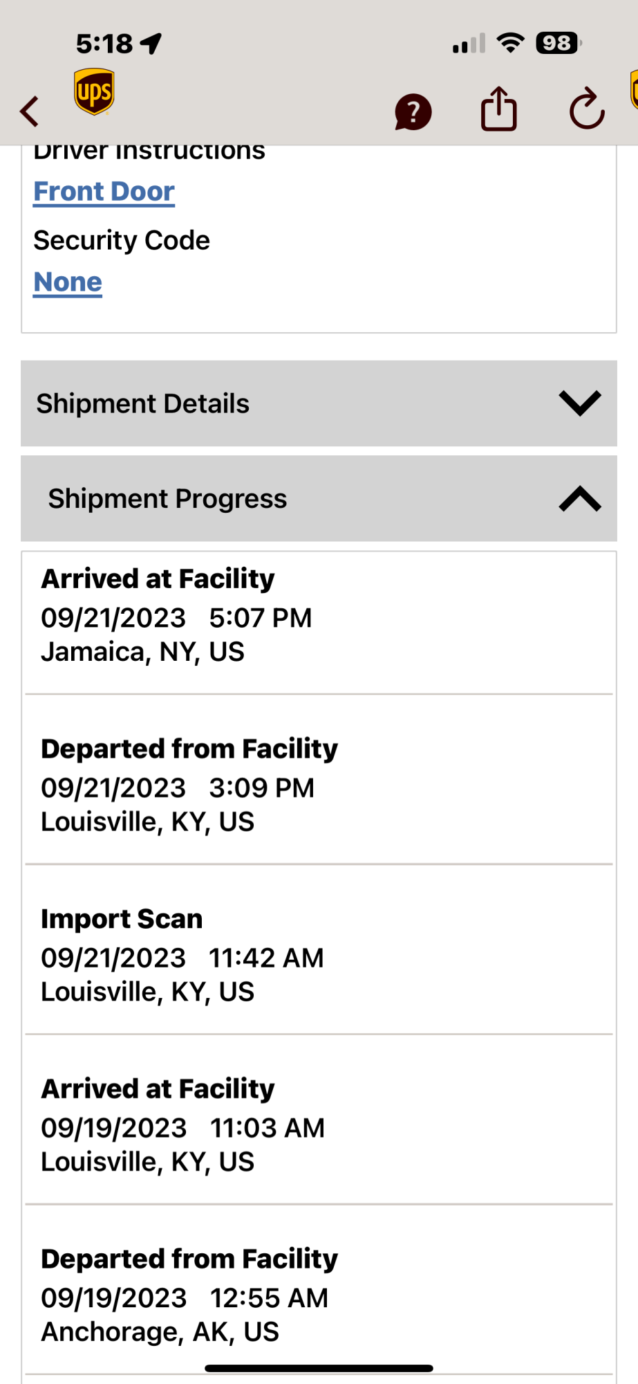 Where is your destination?Think I'm in the same boat. Unless departure scan is taking awhile to load in UPS MyChoice... I'm not leaving until tomorrow early AM.