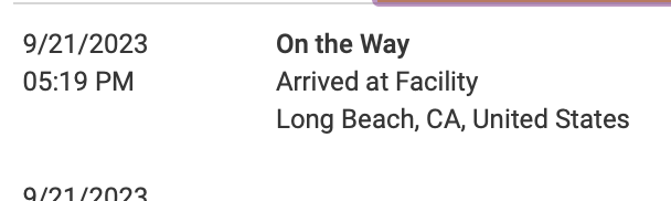 | 9/19/2023 11:03 AM | Arrived at Facility Louisville, KY, United States |