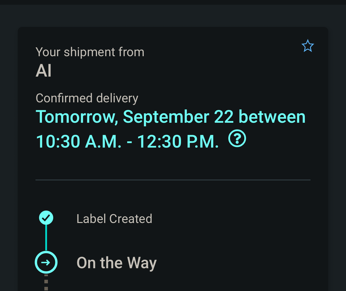 Well, I haven't posted this or a related pic this year, so...My phone departed from Louisville at 3:25 PM ET, but supposedly hasn't arrived to the destination yet. It's going to a place in the same time zone....