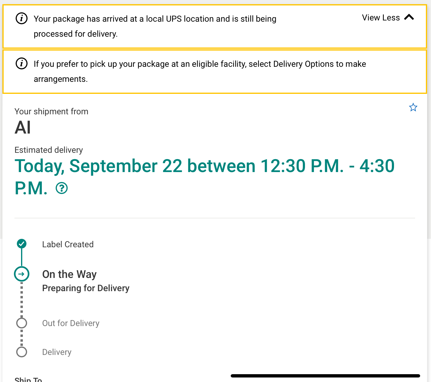Totally not Ok! I live not too far from the center and if they pulled this crap I’d call them and force them to hold it for me to pick it up. Even get Apple on the phone to approve it. Ugh. I hope it still comes today for you.No idea, everything I have coming via UPS is still processing and all say Mon delivery now. Unbelievable.