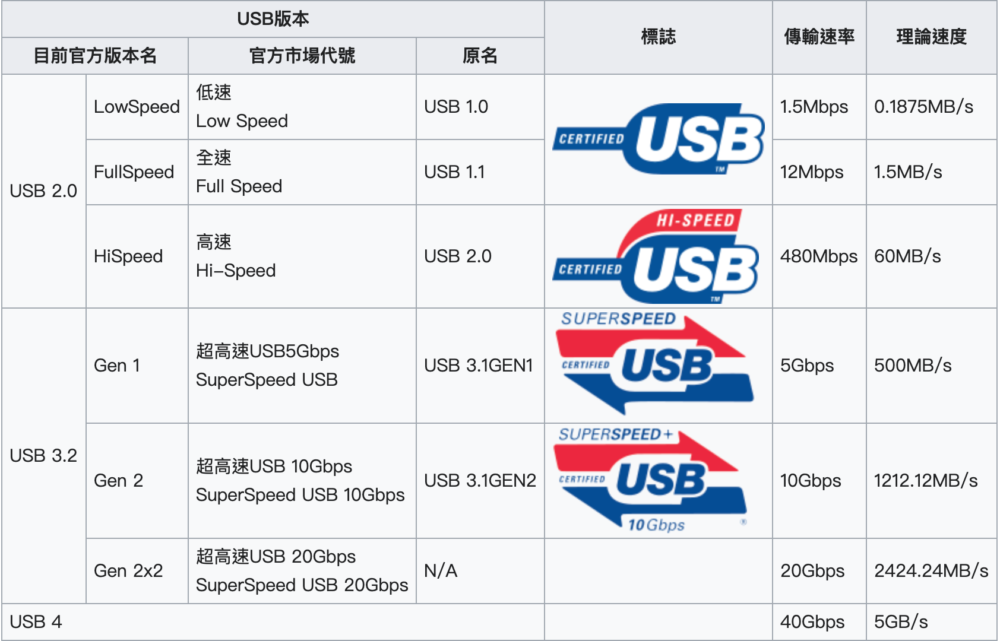 This is true, but in my experience with iPad Pro, sync speeds are not a constant flow but go up and down. Using 10Gb/s cables, the data transfer would sometimes grind to a halt and then go back up. I think these transfers are somewhat CPU dependent or it could be what I call the “small file problem” where any file system has more trouble moving a large number of small files than a small number of large files of the same total size. I got a bigger capacity phone so trying to switch my library from AAC to lossless and the sync start time was taking forever so I gave up and decided to try again later.The provided USB C cable in the box with the phone is only USB C 2.0 which maxes at 480mb/ second. There are a wide variety of versions of USB C Cables out there. You would want at least a version 3.2 cable to max out the phones capabilities. What also comes into play is the USB port type on the computer. Here is a comparison.
