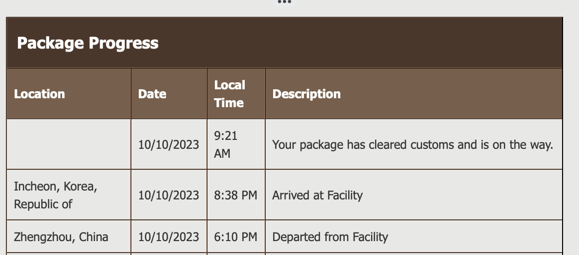 Not me. Just “Your package is in transit. We’re updating plans to schedule your delivery.” My scheduled delivery date is Oct. 10 by 7 PM, but I am pretty sure that didn’t happen.Did anyone have moved from shanghai?