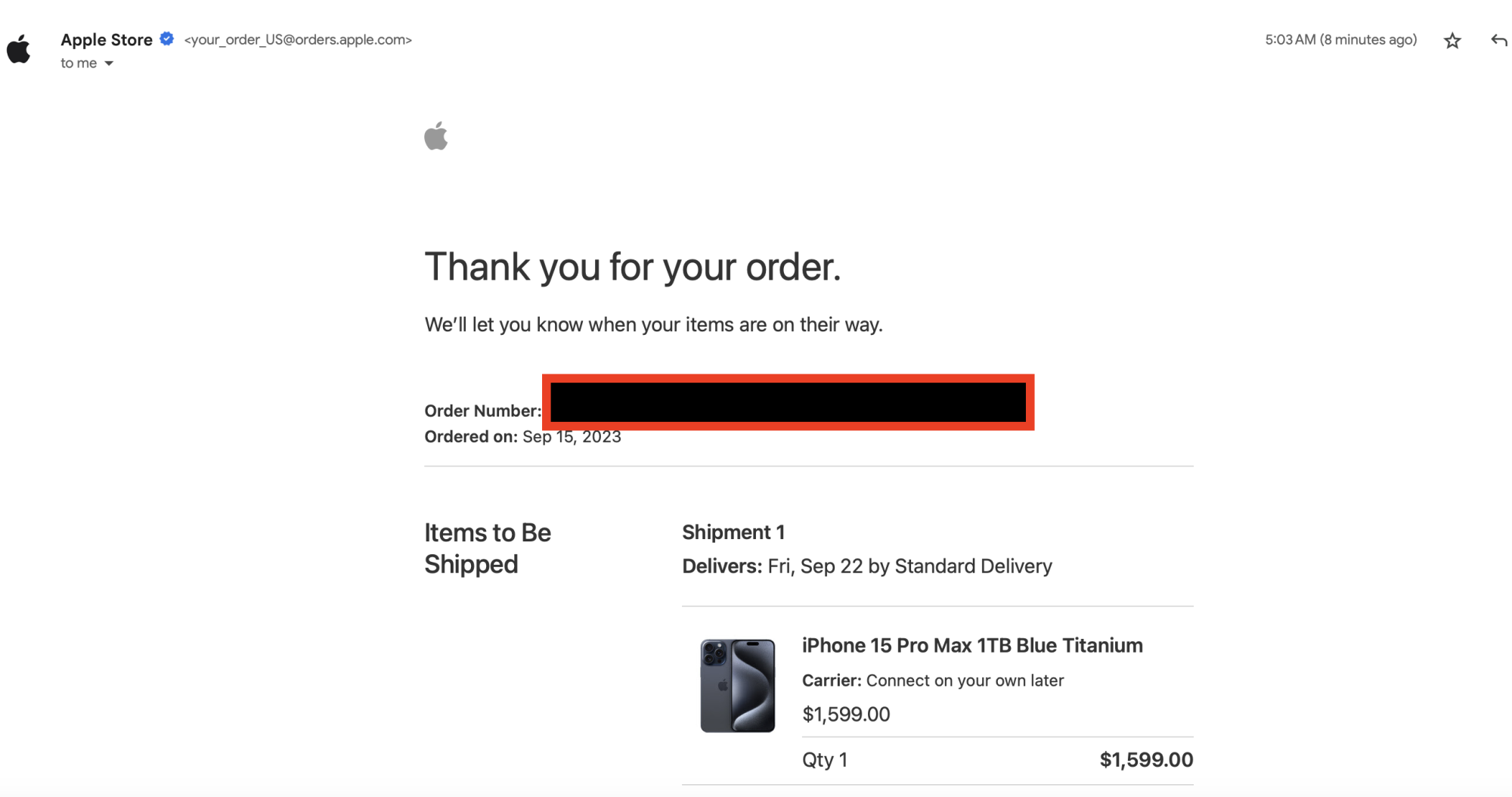 Yep, got mine at 7:05Did you guys get your email confirmation from Apple? I got mine at 5:03 for both of my iPhones.